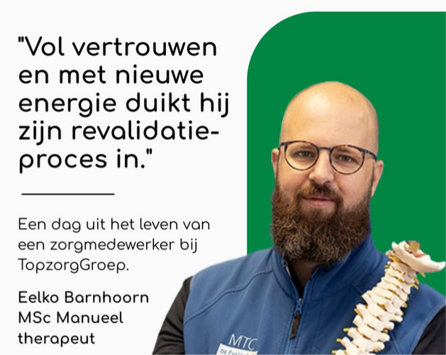 Een aantal weken later pak ik het traject van Jeroen samen op met mijn collega in een duotraject. Mijn collega als hoofdbehandelaar en ik mag me er ook tegen aan bemoeien. Een rol die me ligt. Als 2e behandelaar heb ik de vrijheid om buiten de lijntjes te kleuren van zijn revalidatieschema. Ik spreek veel met Jeroen om een reële verwachting te krijgen over zijn herstel maar ook een positieve! Ik weet zeker dat het goed gaat komen met Jeroen. Het zal echter wel hard werken zijn voor Jeroen maar ook voor mij. Deze reële en positie verwachting voor herstel is. m.i. essentieel. De kwartjes vallen bij Jeroen. Vol vertrouwen en met nieuwe energie duikt hij zijn revalidatieproces in. Na de eerste weken is het eerste resultaat al zichtbaar. Ik zie Jeroen met de week positiever worden en zijn vragen verdwijnen naar de achtergrond. Hij heeft het vertrouwen gevonden dat hij op de juiste weg zit. De weg naar herstel en functioneren. Hij begint stiekem al weer te fantaseren over fotografieprojecten en de reizen die hij daarvoor wilt maken. Maar de weg is nog lang.